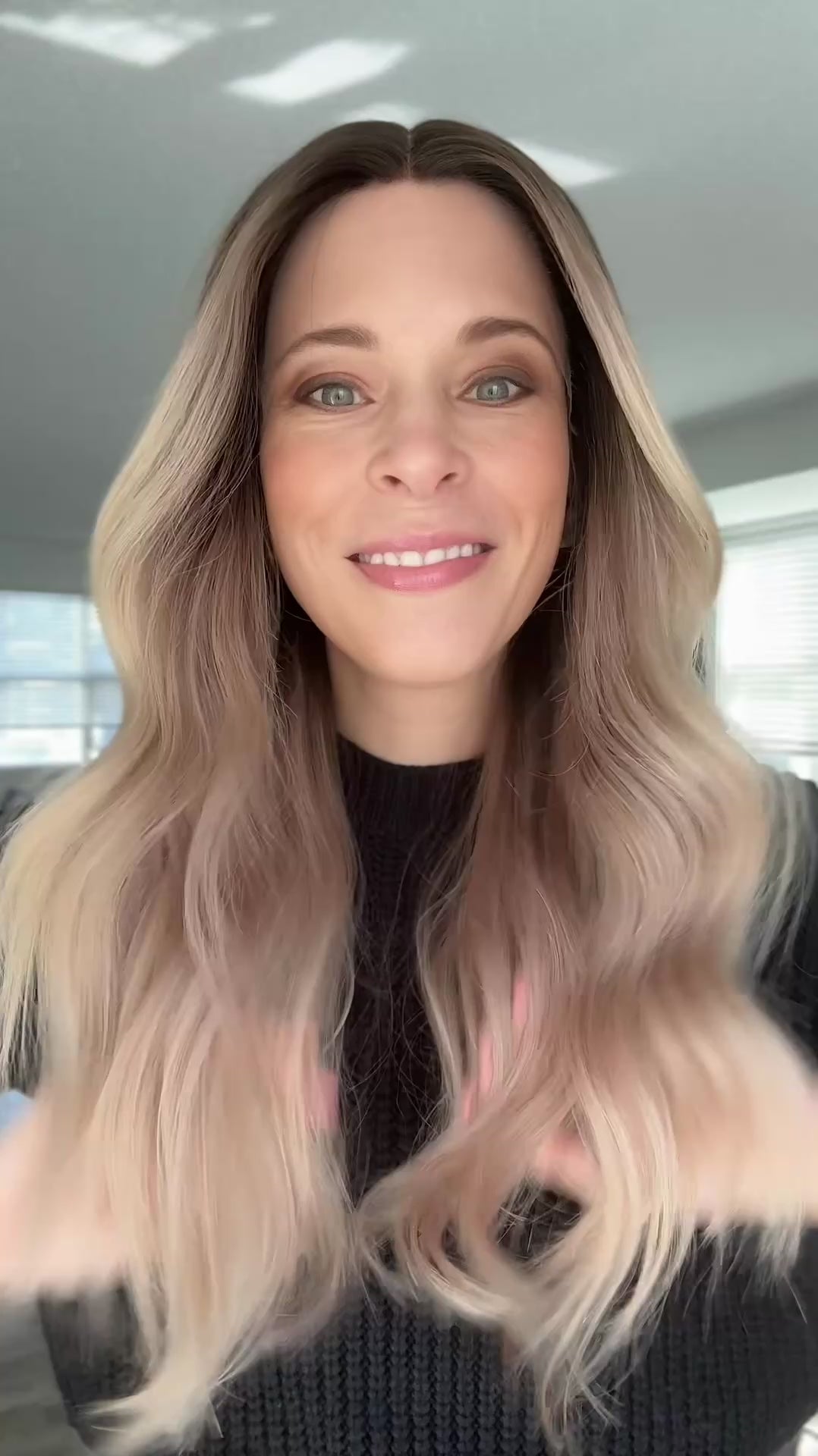 Level 6 soft root melt blended into champagne blond lengths. Multidimensional, cool champagne and soft gold undertones.