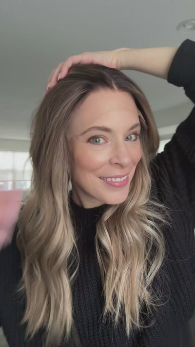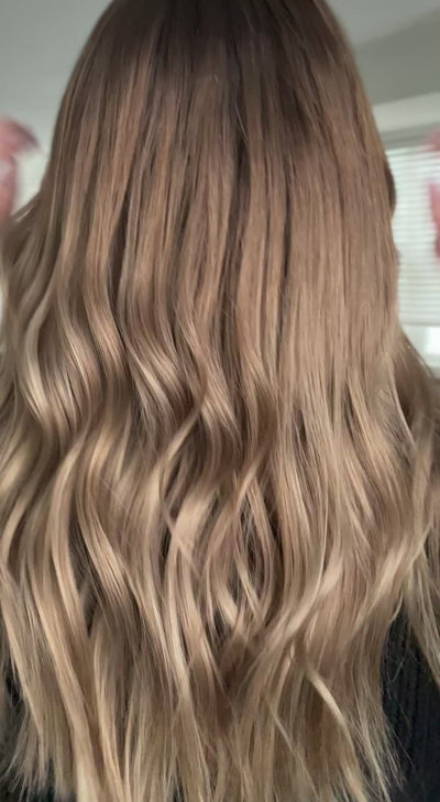Level 6 short root blended into level 7 root melt. Blend of honey an champagne blond tones.